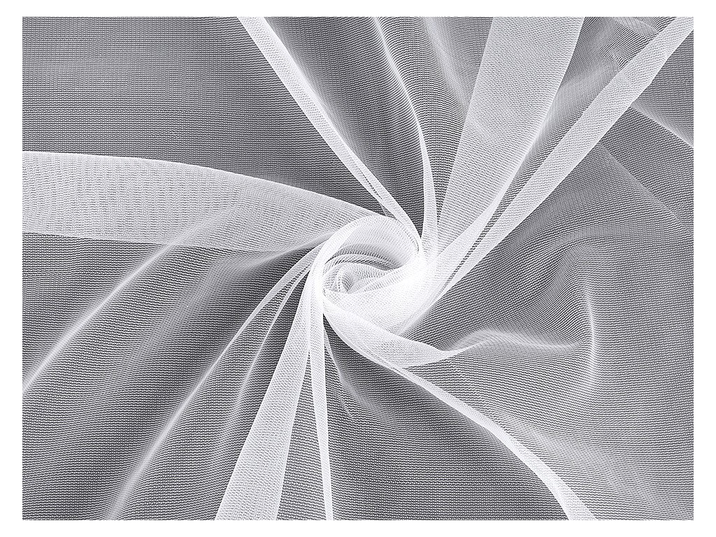 Šifonový úplet je vzdušný a lehký. Jemně pruží po šíři. Využijete ho na šití svatebních a společenských šatů, [sukní či halenek.]