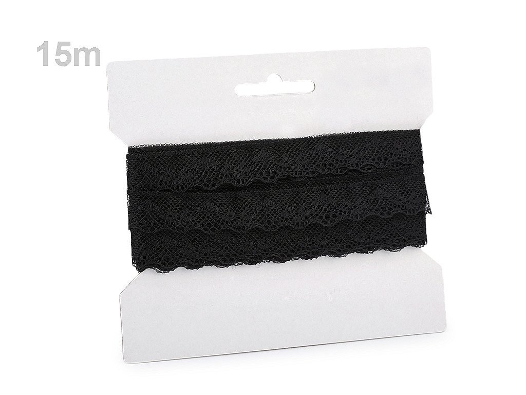 Jemná silonová krajka je na spodní straně zakončena obloučky. Krajka je pevná, není pružná.