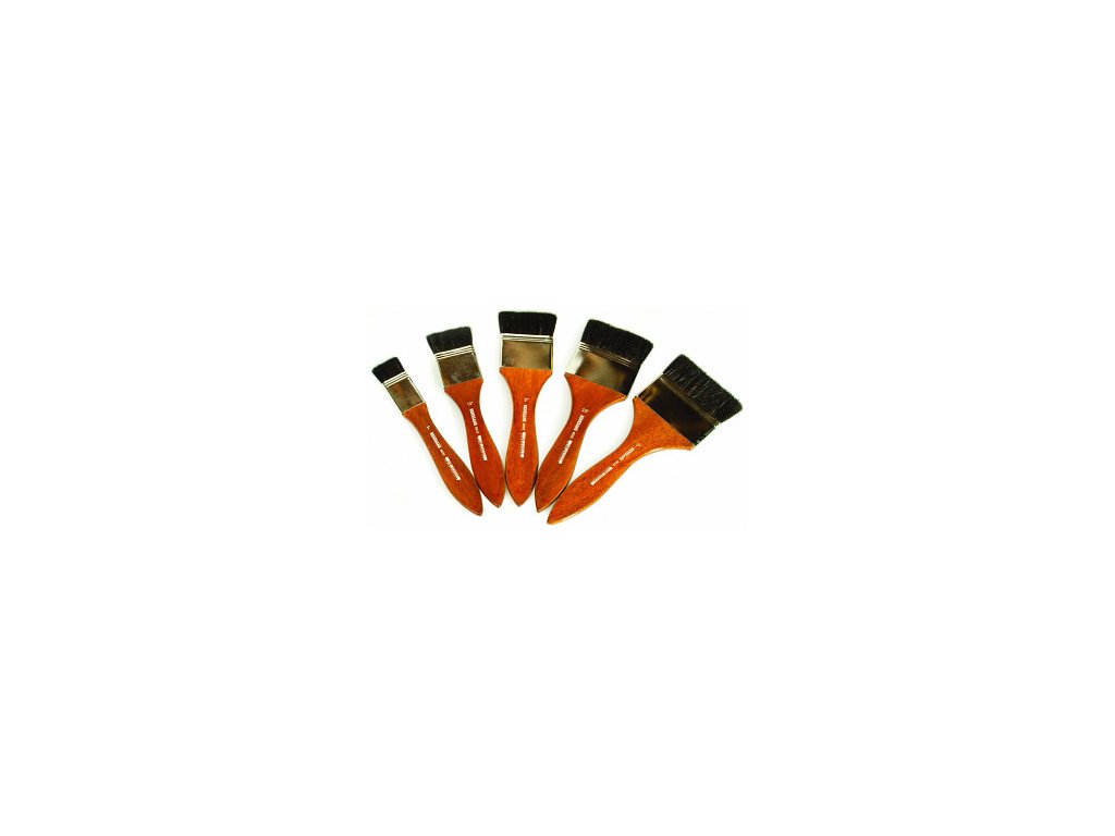 Přírodní široký štětec s krátkými kozími štětinami pro malbu, nanášení šepsu, apod. Štětec je středně jemný, avšak díky krátkosti štětin dost pevný a vhodný pro nanášení velkého množství materiálu. Násadka je dřevěná, krátká, do hněda lakovaná. Vybírat můžete z 5 různých šířek.