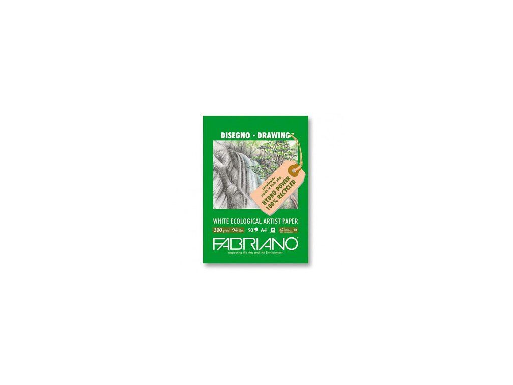 Fabriano Disegno Ecological paper je všestranný skicák vyráběný ze 100% recyklovaných materiálů. Je také acid free (bez použitých kyselin), díky čemuž má dlouhodobou archivační kvalitu. Papír je výrazně bělejší než běžný recyklovaný papír, má příjemně krémovou barvu. Povrch je s jemnou strukturou (cold pressed) vhodnou na suché techniky jako je tužka, uhel či pastel. Díky vysoké gramáži jej můžete ale použít také pro inkousty či kvaš a temperu.