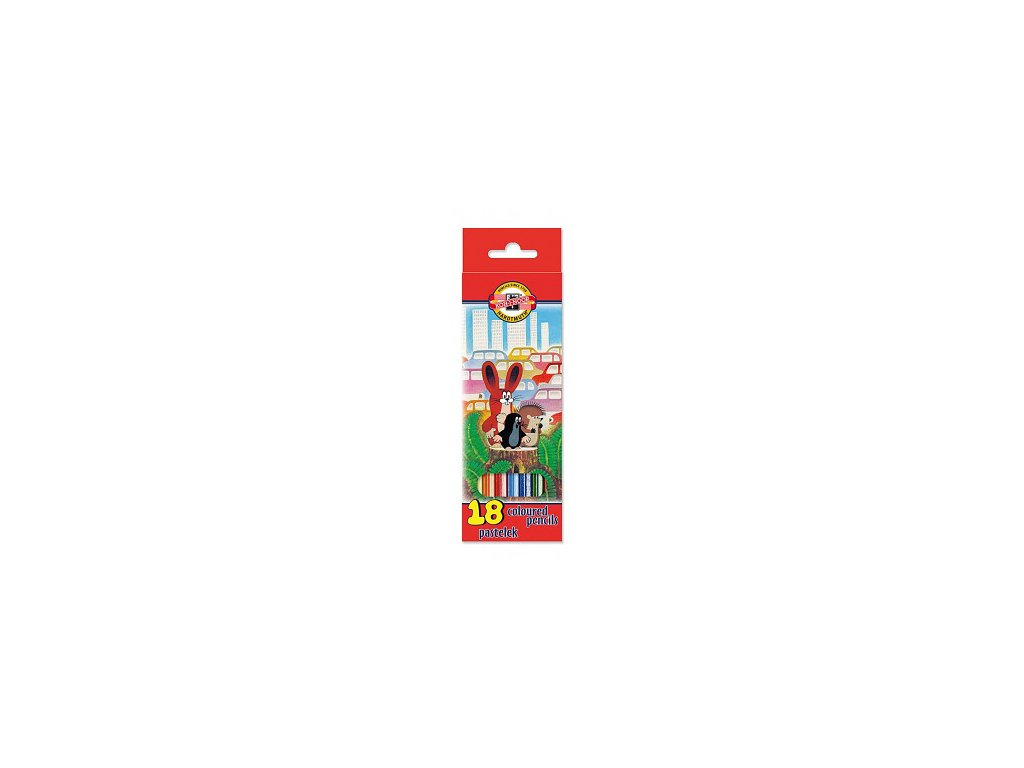 Školní pastelky v papírovém obalu od značky Koh-i-noor. Sada obsahuje 18 barevných pastelek, vhodných spíše pro děti a amatéry.