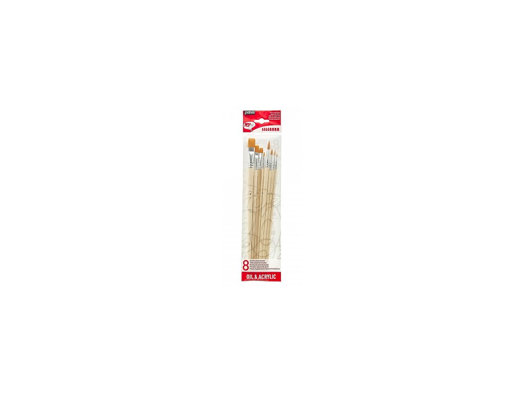 Sada ekonomických syntetických štětců Pébéo, vhodných především pro práci s akrylovými, temperovými či olejovými barvami. V sadě najdete 8 štětců, 4 kulaté (velikosti 0,3,6 a 10) a 4 ploché (velikosti 2,6,10 a 14).
