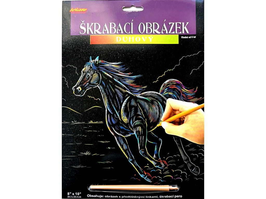 Škrabací obrázek duhový 20 x 25 cm Sada obsahuje obrázek natištěný na černém kartonu a umělohmotné škrabací pero. Seškrabte linky předtištěného obrázku. Vhodné pro děti od 6 let.