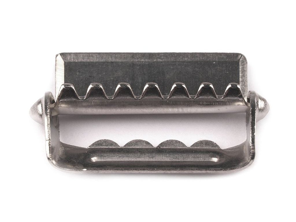 Přezky jsou vyrobeny z kvalitní oceli. Používají se k regulaci délky šlí a díky zoubkům pevně drží.
