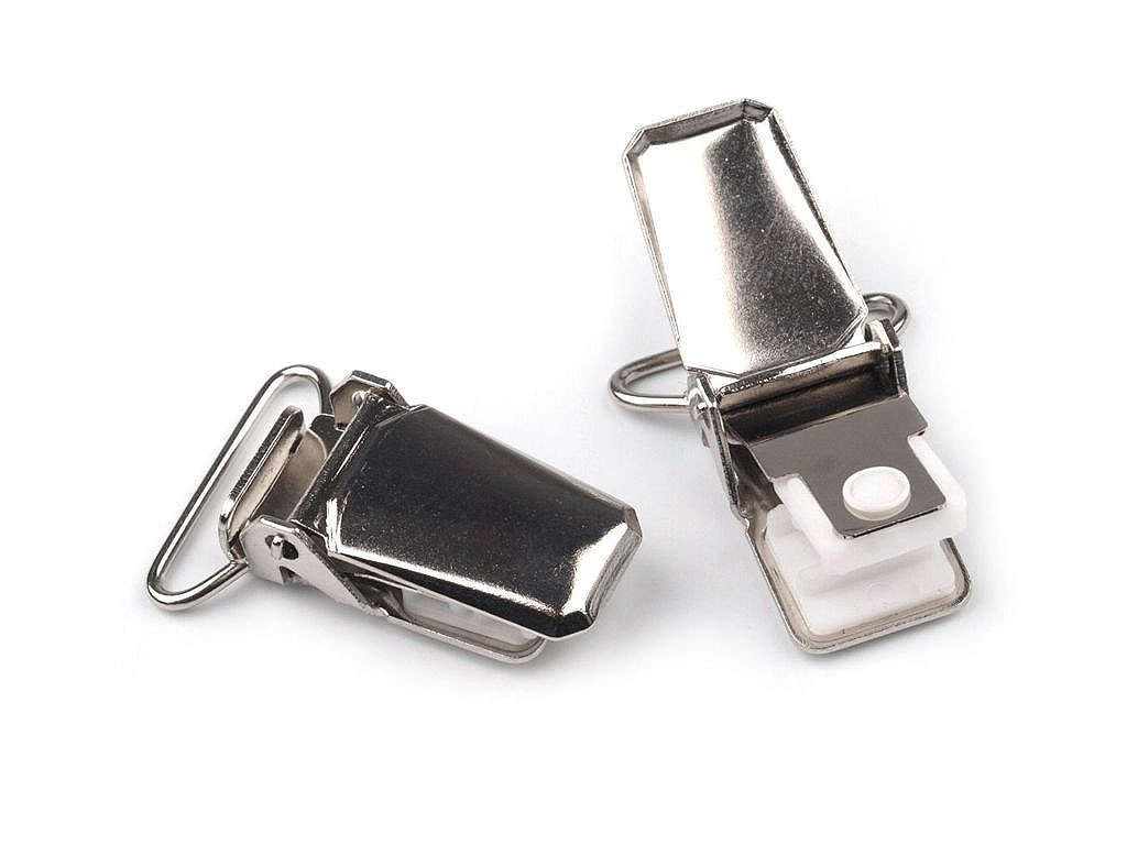 Šlový závěs použijete k mechanickému připevňování šlí k oděvu. Tento typ obsahuje bílé plastové vložky, které drží mnohem lépe než typy bez plastových vložek. Šlové závěsy nabízíme v provedení nikl.