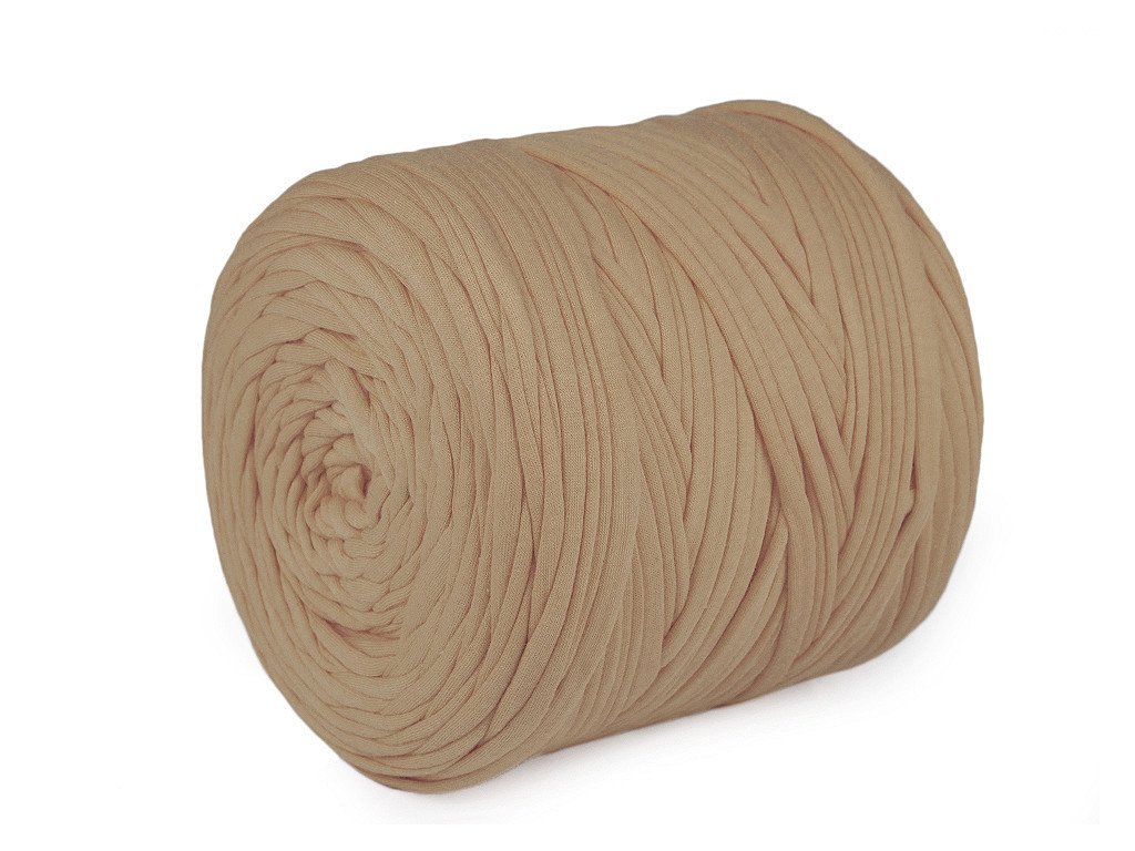 Pevnou špagetovou přízi tvoří nařezané proužky z ekologické bavlny. Využijete ji na pletení a háčkování koberečků, dek, tašek, šál, košíků, batohů, povlaků na polštáře apod. Je příjemná na dotek, vhodná i k pletení rukama.