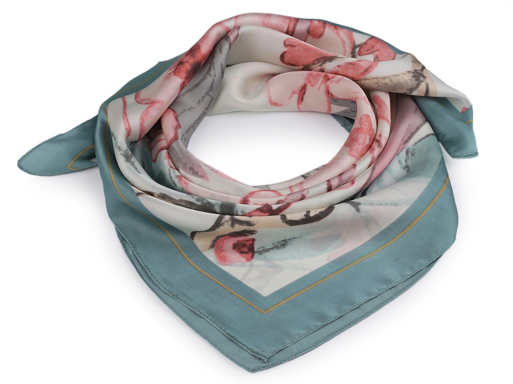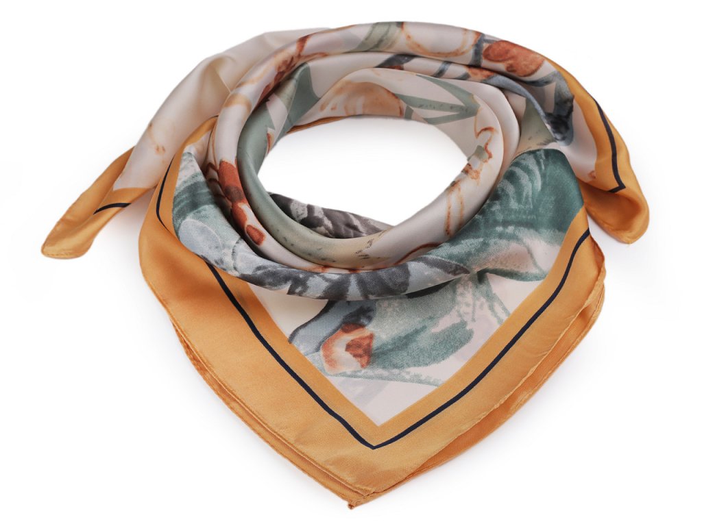 Saténový šátek květy a motýl 70x70 cm