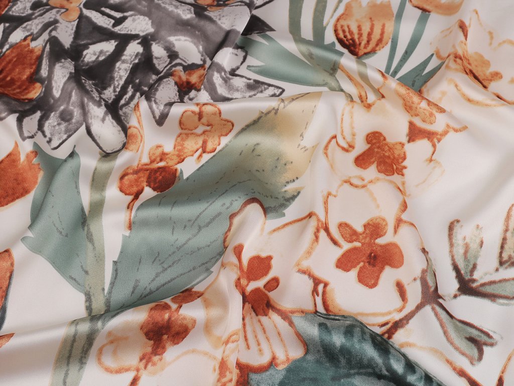 Saténový šátek s květy a motýlem využijete na každodenní nošení. Jeho příjemný materiál je hebký na dotek. Šátek můžete uvázat do slušivého uzlu, který podtrhne eleganci vašeho oděvu.