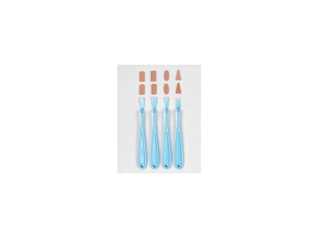 Sada obsahuje 4 nože různých tvarů včetně 8 vyměnitelných houbiček.
