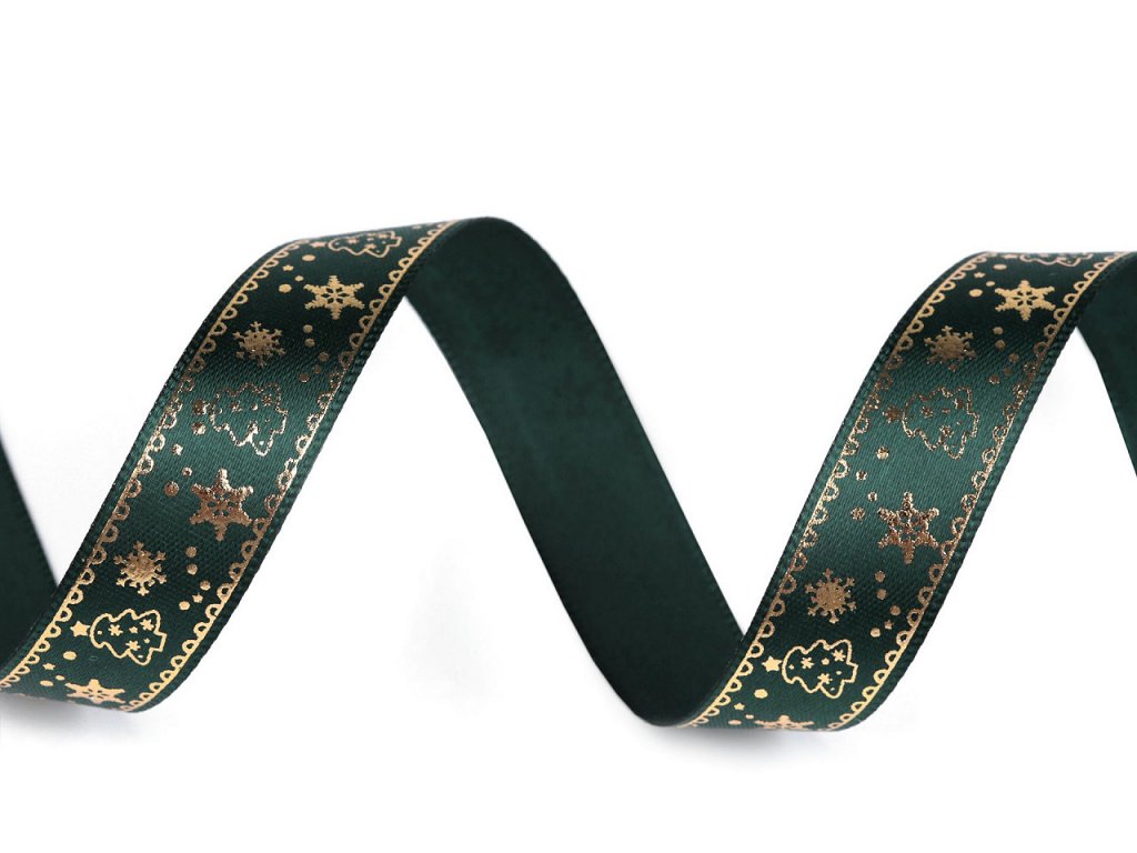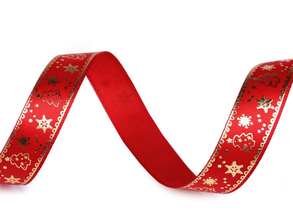 Dekorační saténová stuha s vánočním potiskem je velice poutavá. Potisk je jednostranný, metalický, připomíná lurex.