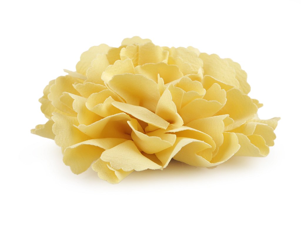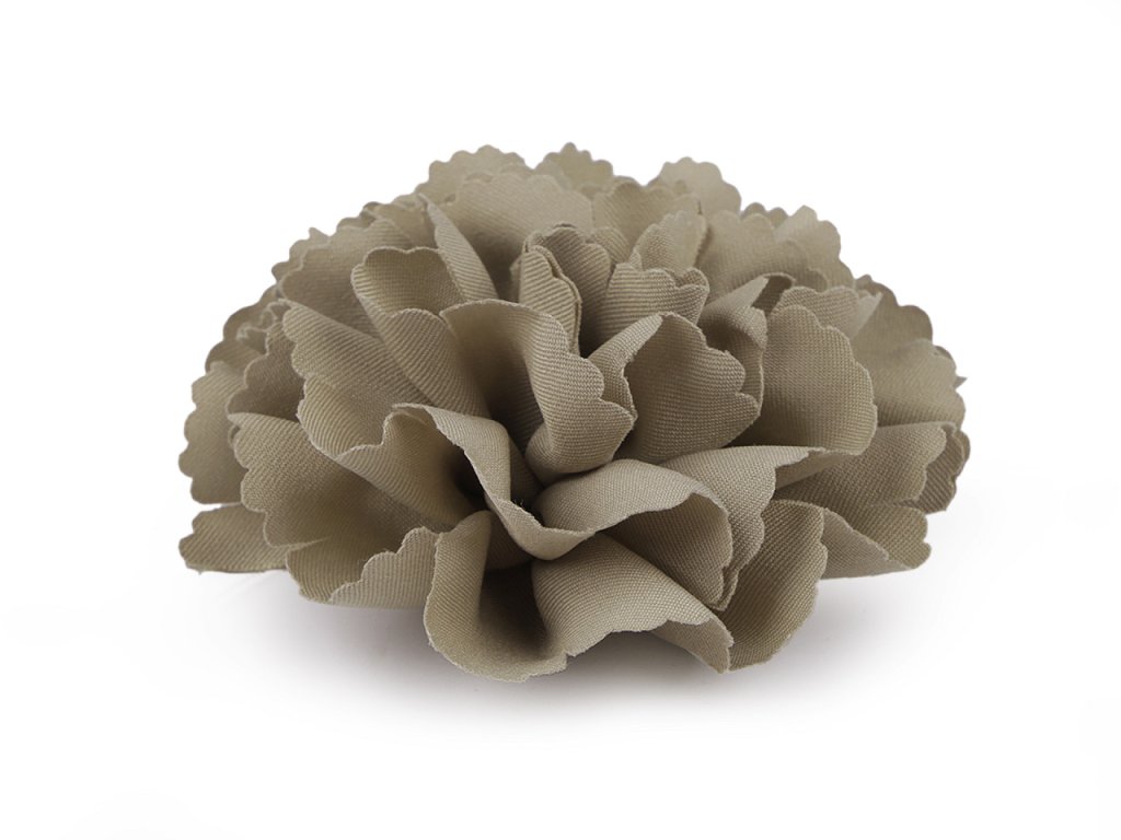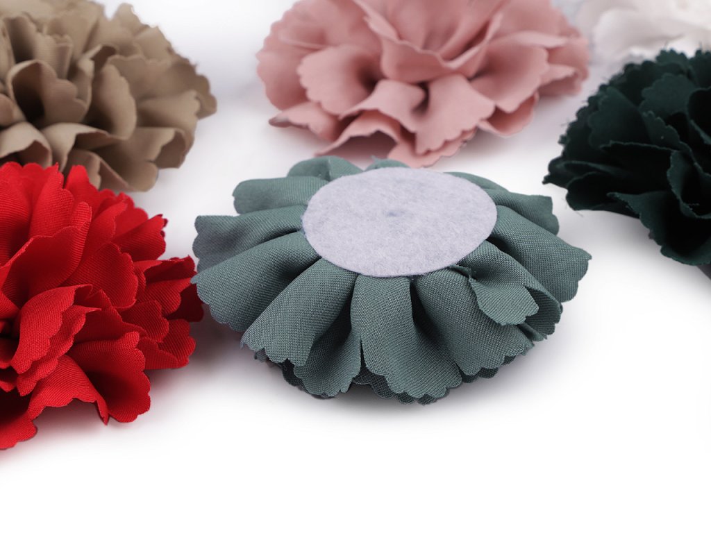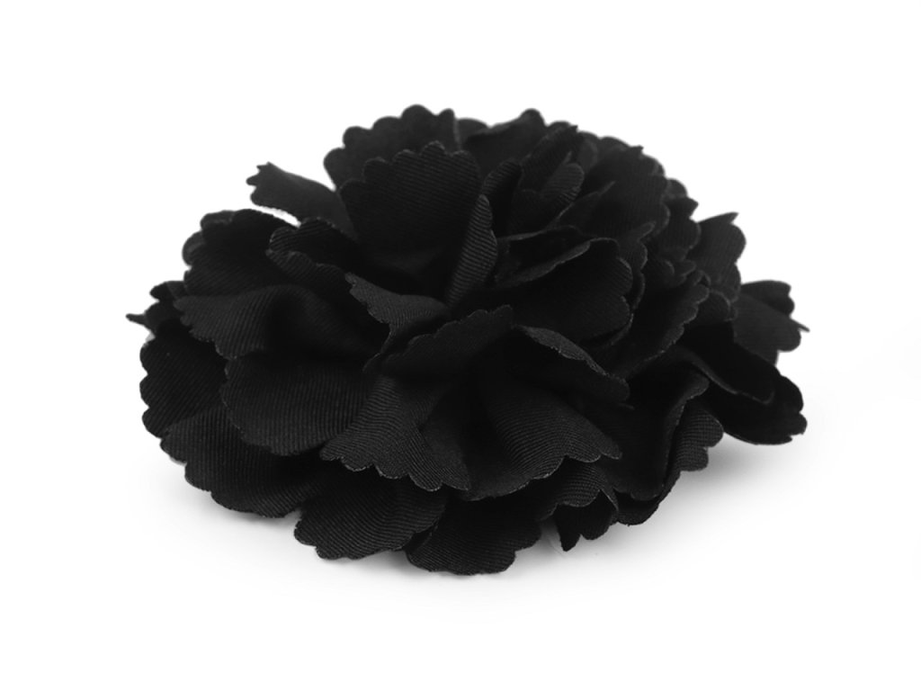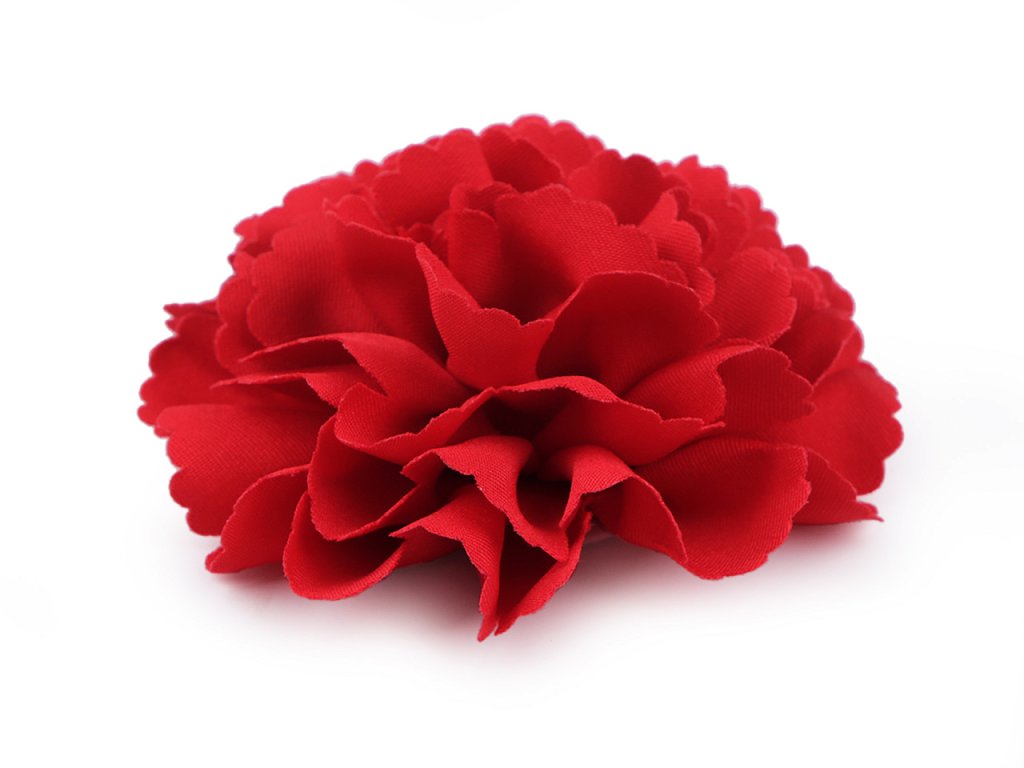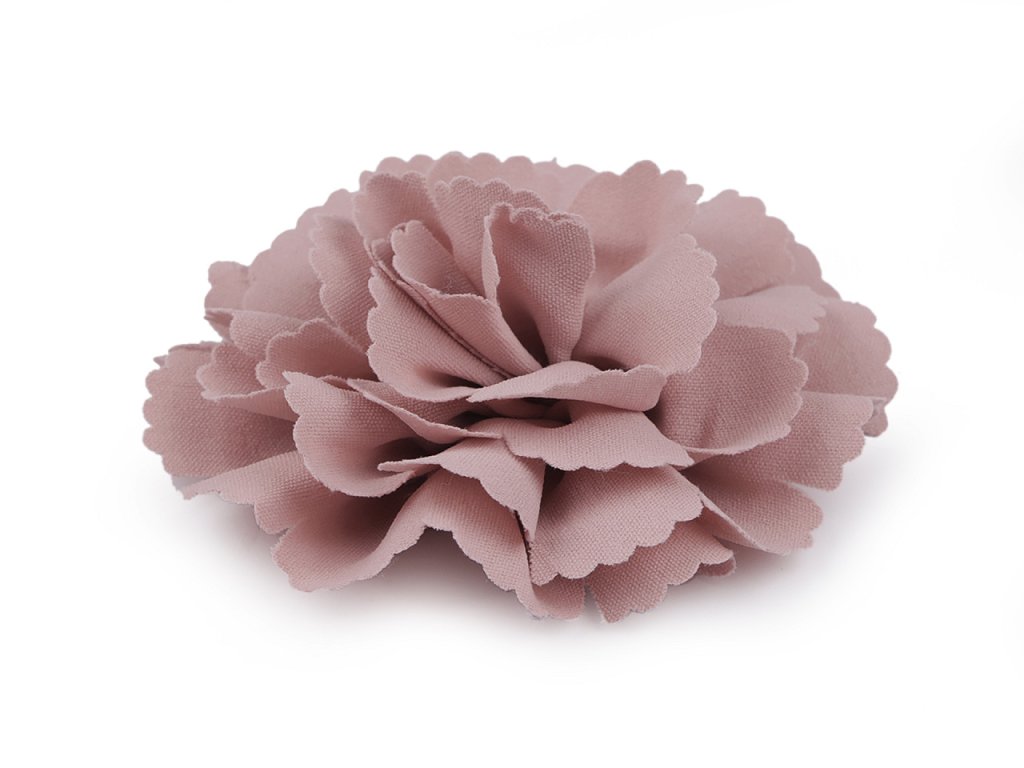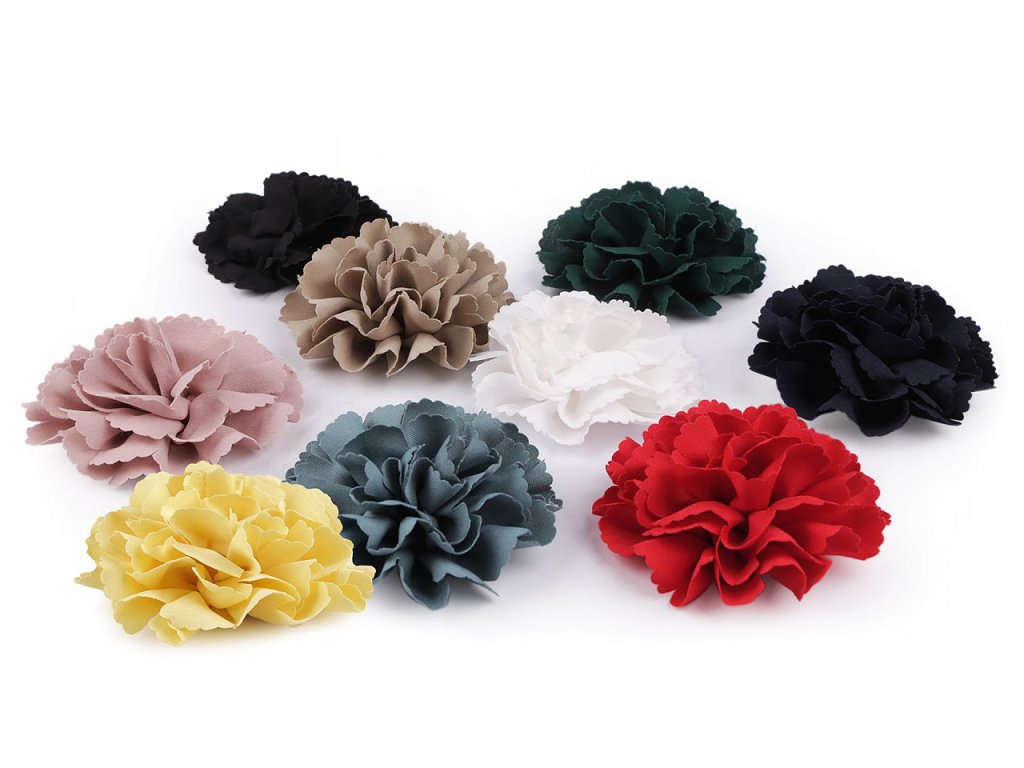 Velký textilní květ připomínající karafiát je velice poutavý. Ve spodní části má filcové kolečko, díky kterému jej pohodlně kamkoliv upevníte. Můžete ho našít či nalepit jako ozdobu na šaty, kabátky, svetry apod. V kombinaci s brožovým můstkem s ním vytvoříte zajímavou brož. Díky klipu ho zase můžete připevnit na boty.