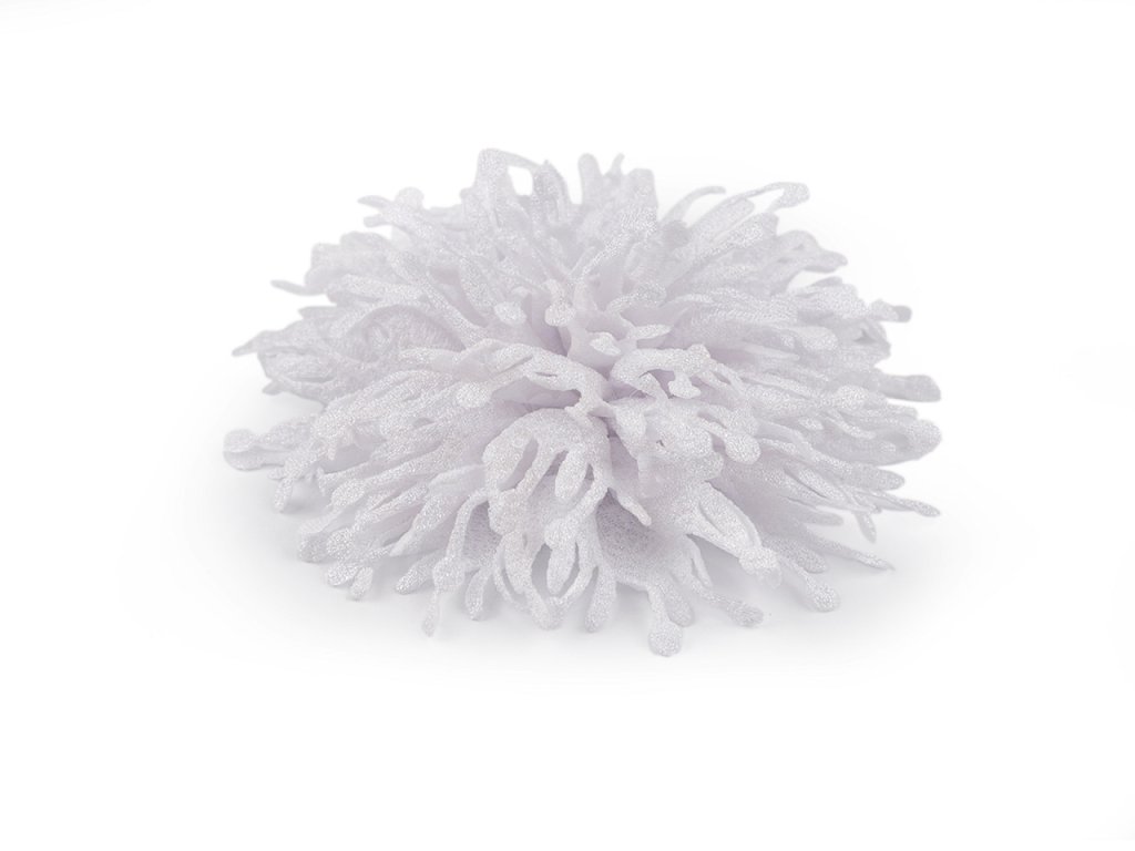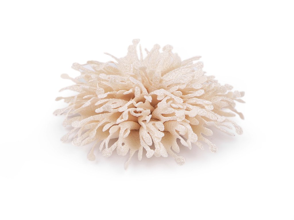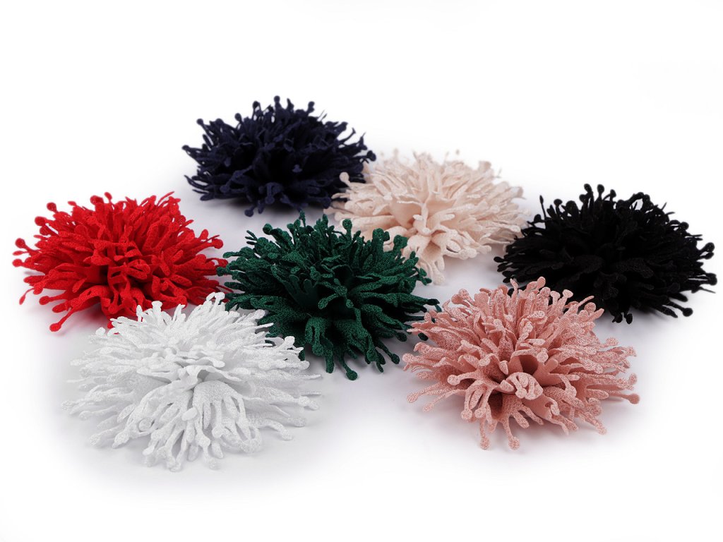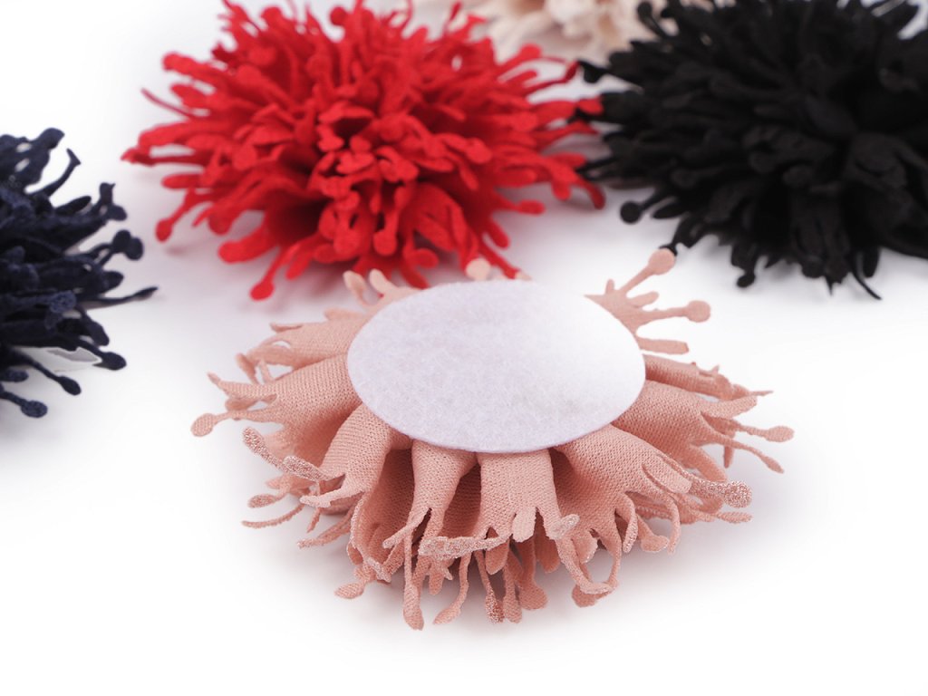 Střapatý textilní květ působí nadýchaným dojmem. Ve spodní části má filcové kolečko, díky kterému jej pohodlně kamkoliv upevníte. Můžete ho našít či nalepit jako ozdobu na šaty, kabátky, svetry apod. V kombinaci s brožovým můstkem s ním vytvoříte zajímavou brož. Díky klipu ho zase můžete připevnit na boty.