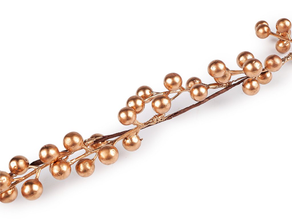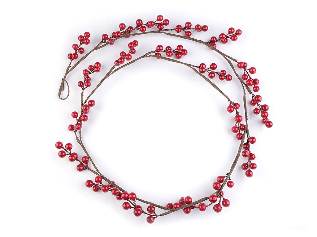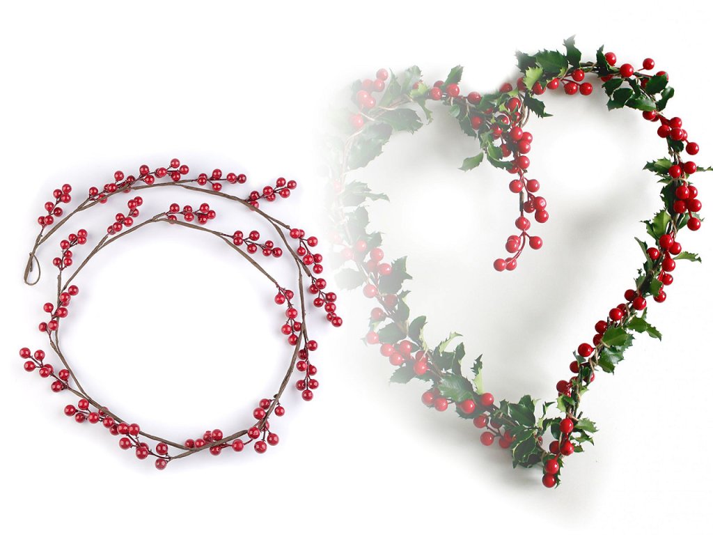 Dekorační jeřabiny z polystyrenu jsou připevněny na plastovou větvičku. Jednotlivé trsy jsou upevněny na drát, který je 150 cm dlouhý. Větvička se dá lehce tvarovat a upravit do pozice, jakou budete chtít.