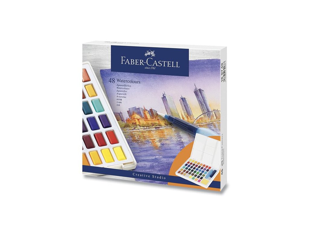 Akvarelové barvy Faber-Castell s paletkou - 48 barev