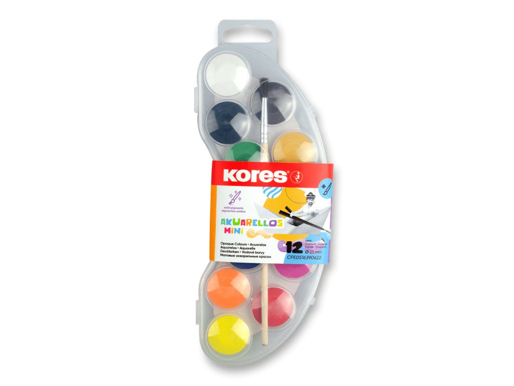 Vodové barvy Kores Akuarellas Mini - 12 barev, průměr 25 mm