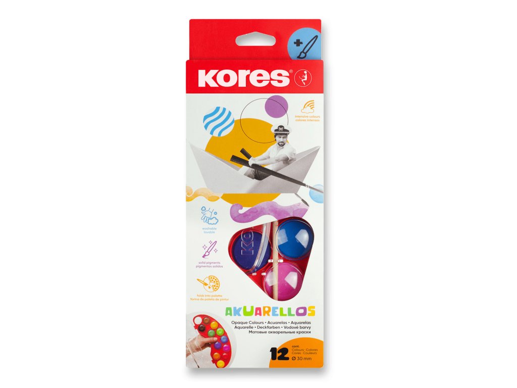 Vodové barvy Kores Akuarellos - 12 barev, průměr 30 mm