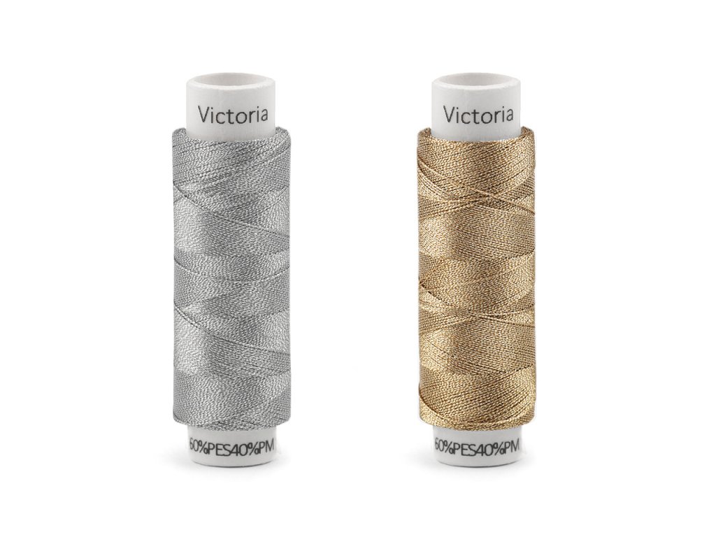 Metalická nit Victoria je efektní vyšívací příze pro strojové a ruční šití. Je podobná niti Rexana, která se již nevyrábí. Využijete ji na velmi jemné krajkářské práce, paličkování, na vyšívání i jako přípletovou přízi na pletení a háčkování.