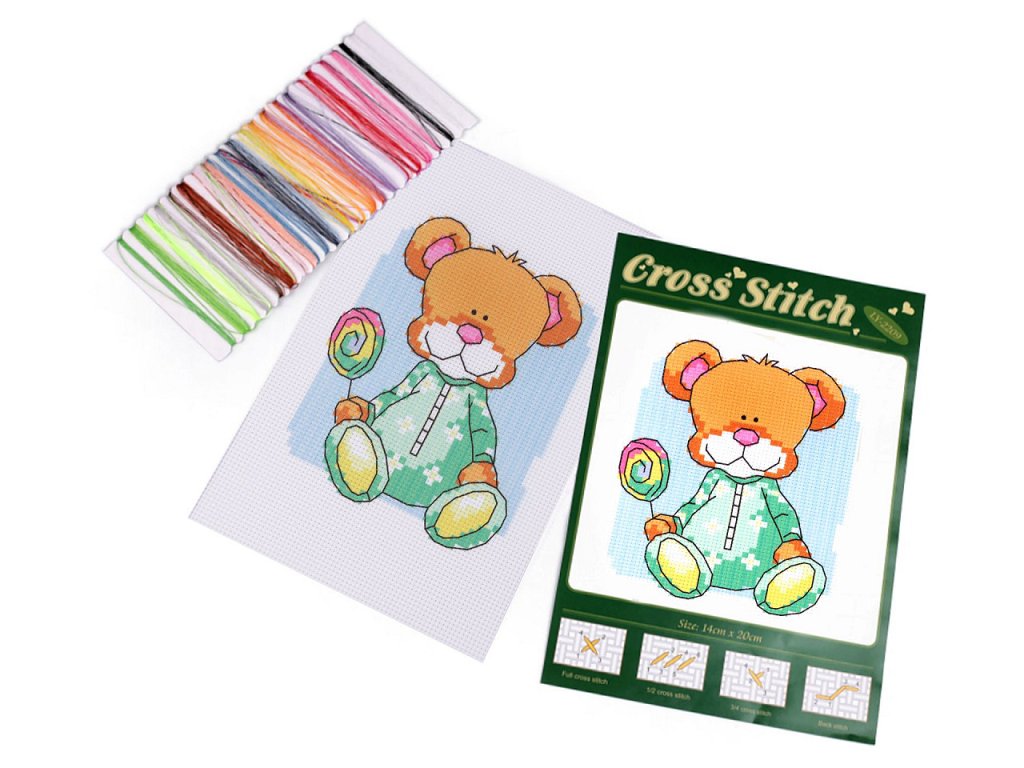 Dětské vyšívání s různými motivy je vhodné na křížkový steh. Součástí balení je jehla a nitě, ale doporučujeme použít příze mouline, které na výšivce lépe vyniknou.