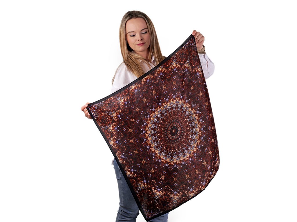 Šátek s motivem mandaly je vyrobený z kvalitního vzdušného materiálu, šátek je hebký na dotek, příjemně vás zahřeje. Díky dokonalému zpracování a univerzálnímu designu se hodí pro různé příležitosti, od běžného denního nošení po speciální události. Je také skvělým společníkem na cesty, když si chcete snadno a rychle vylepšit svůj vzhled.