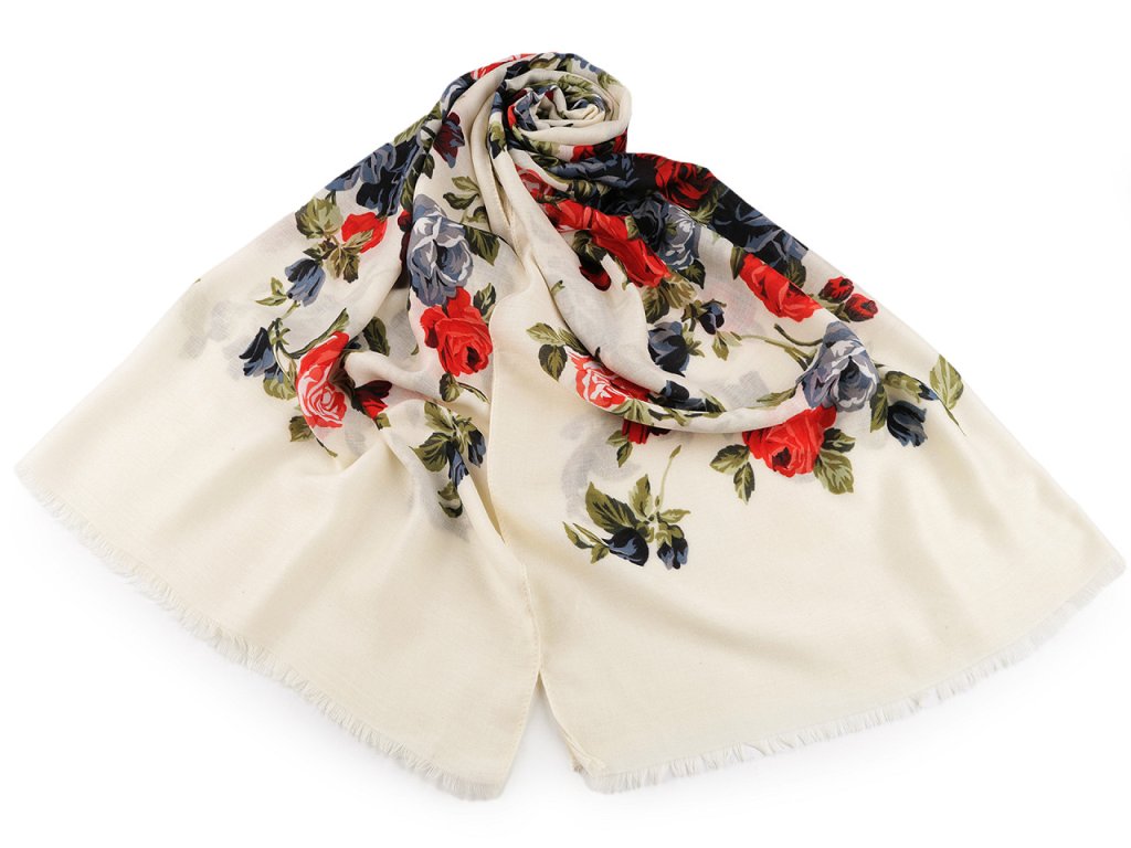 Velký oboustranný šátek s květy růží je příjemný a prodyšný, bude pohodlný v jakékoli situaci. Hodí se na jarní a podzimní nošení. Dezén s květy se skvěle kombinuje s jakýmkoliv outfitem. Ať už se chystáte do práce nebo na neformální setkání s přáteli, tento šátek je praktickým a stylovým doplňkem, který dodá vašemu vzhledu šmrnc. Na koncích je zakončený třásněmi dlouhými 1 cm.
