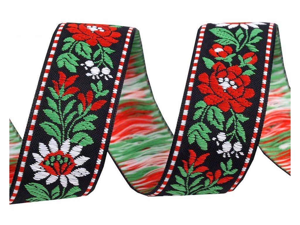 Krojovou vzorovku určenou původně ke zdobení krojů, dnes využíváme i ke zdobení na běžné oděvy, prádlo, bytové textilie, hračky a upomínkové předměty. Použití je variabilní. Stuhy vyniknou svou barevností na látce různého dezénu a barvy. Jsou tkány na jehlových stavech a vyrábějí se již jen v materiálu polyester! Dodáváme v návinu po 25 m.