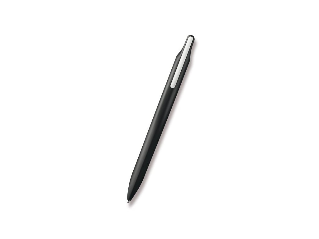 Kuličkové pero Lamy Xevo v černém provedení má tělo z tvarovaného plastu s plynulým přechodem z trojúhelníkového do kulatého tvaru, kovový klip.