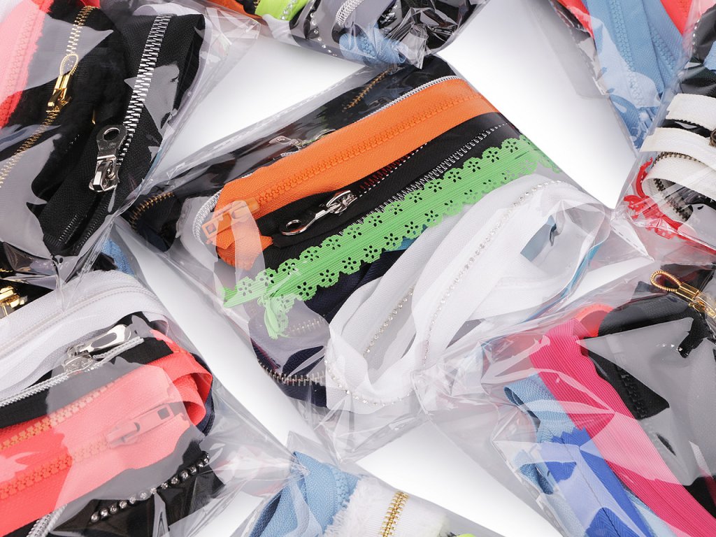 Balení zipů obsahuje zipy různých druhů, barev, šíře a délek. Najdete zde zipy kovové, kostěné, spirálové, krajkové, voděodolné atd.