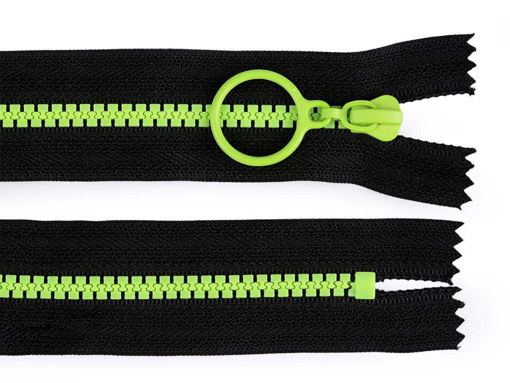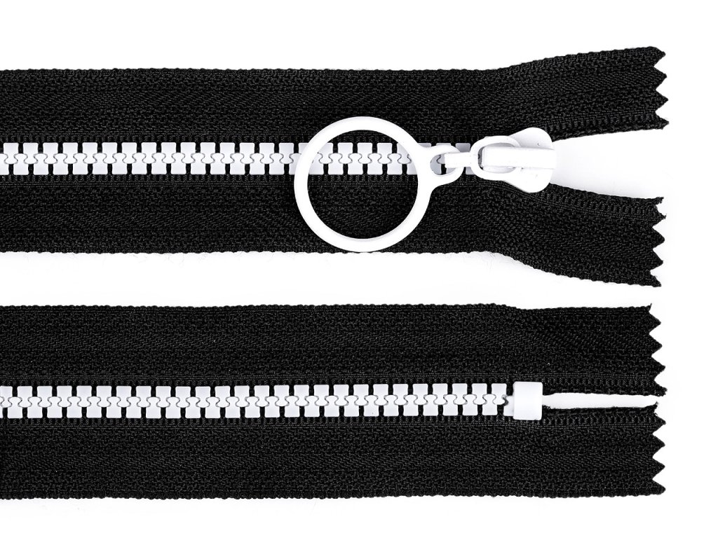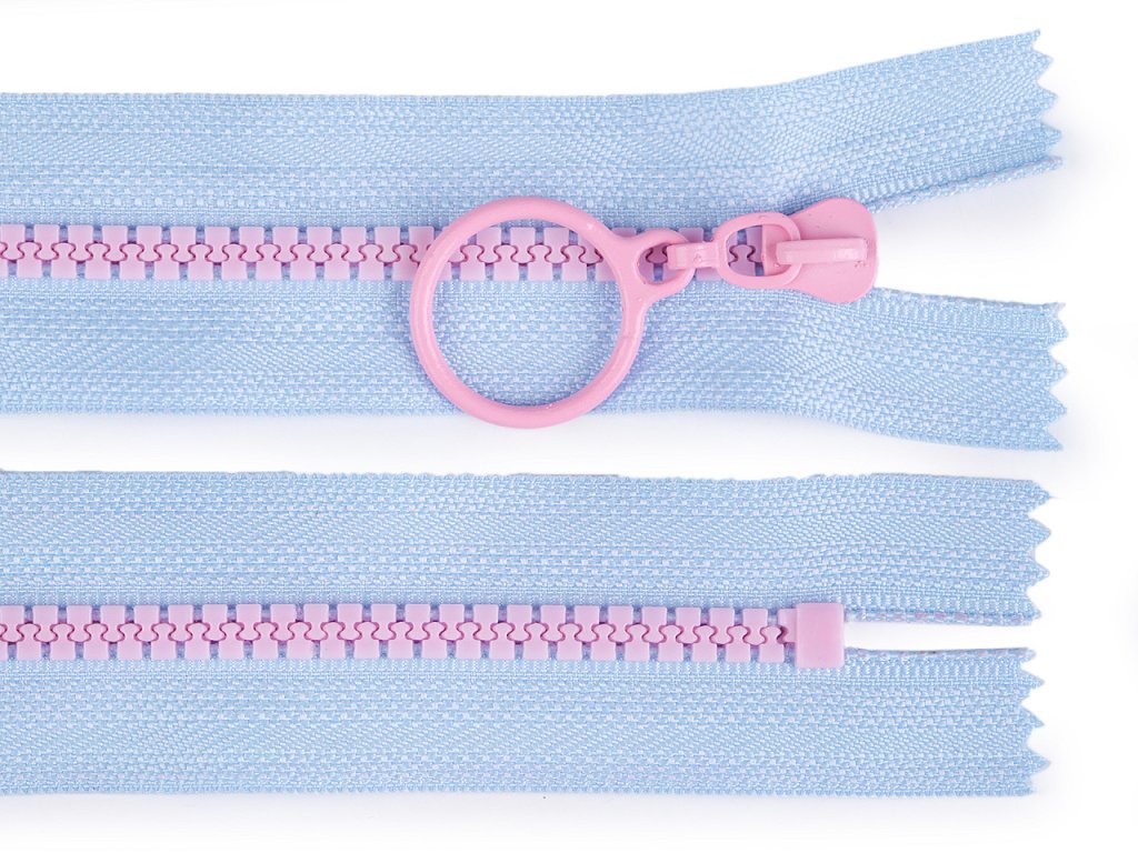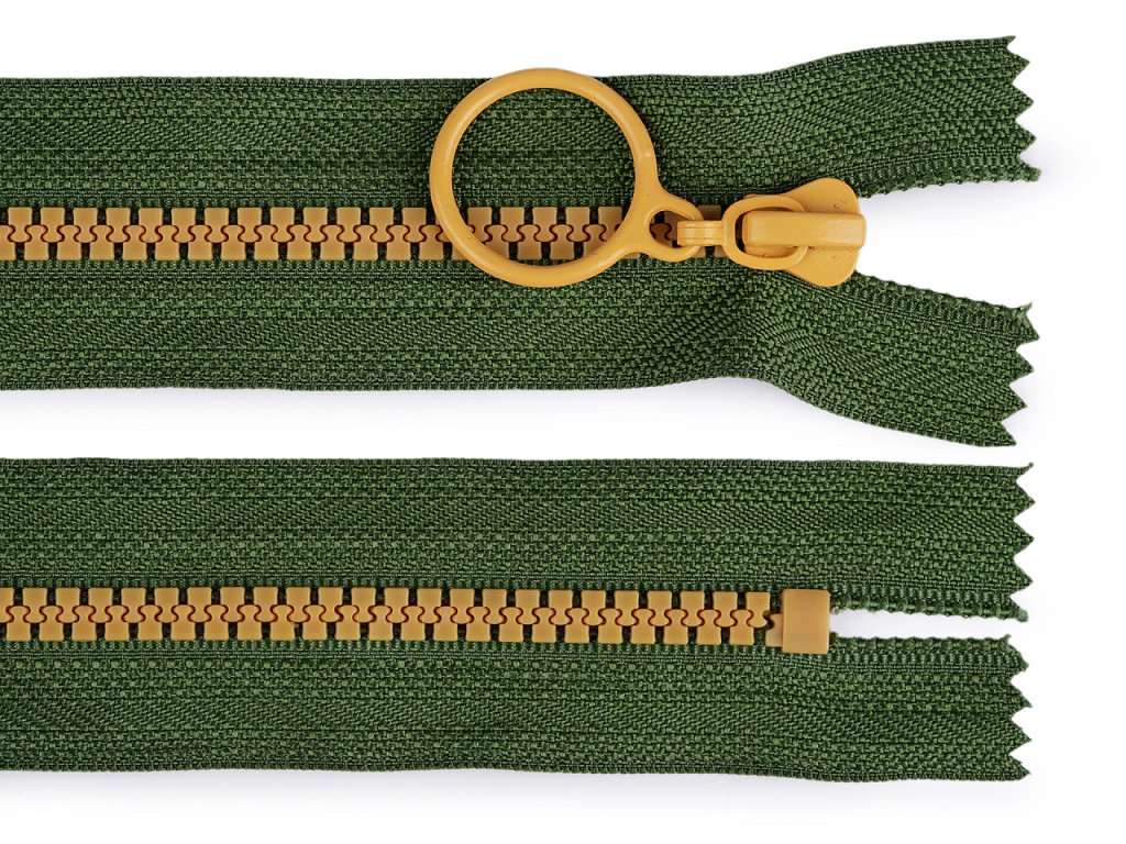 Nedělitelný kostěný zip je vhodný na mikiny, trička, menší tašky či pouzdra. Jezdec a zoubky vynikají jiným zabarvením než samotný zip.