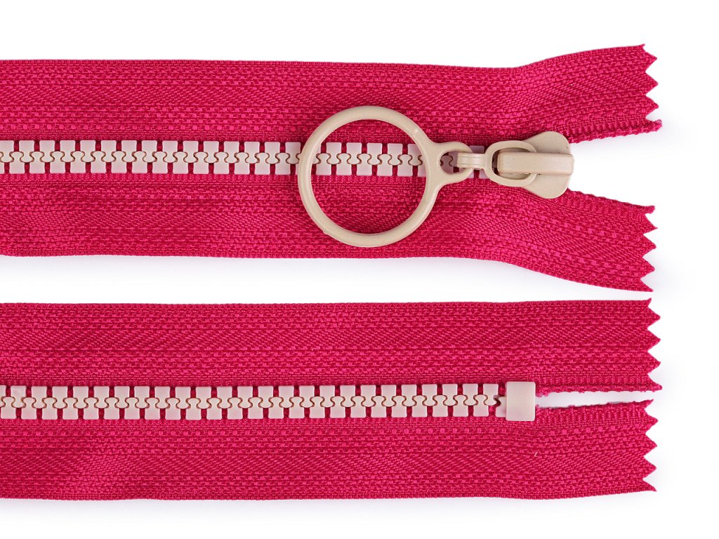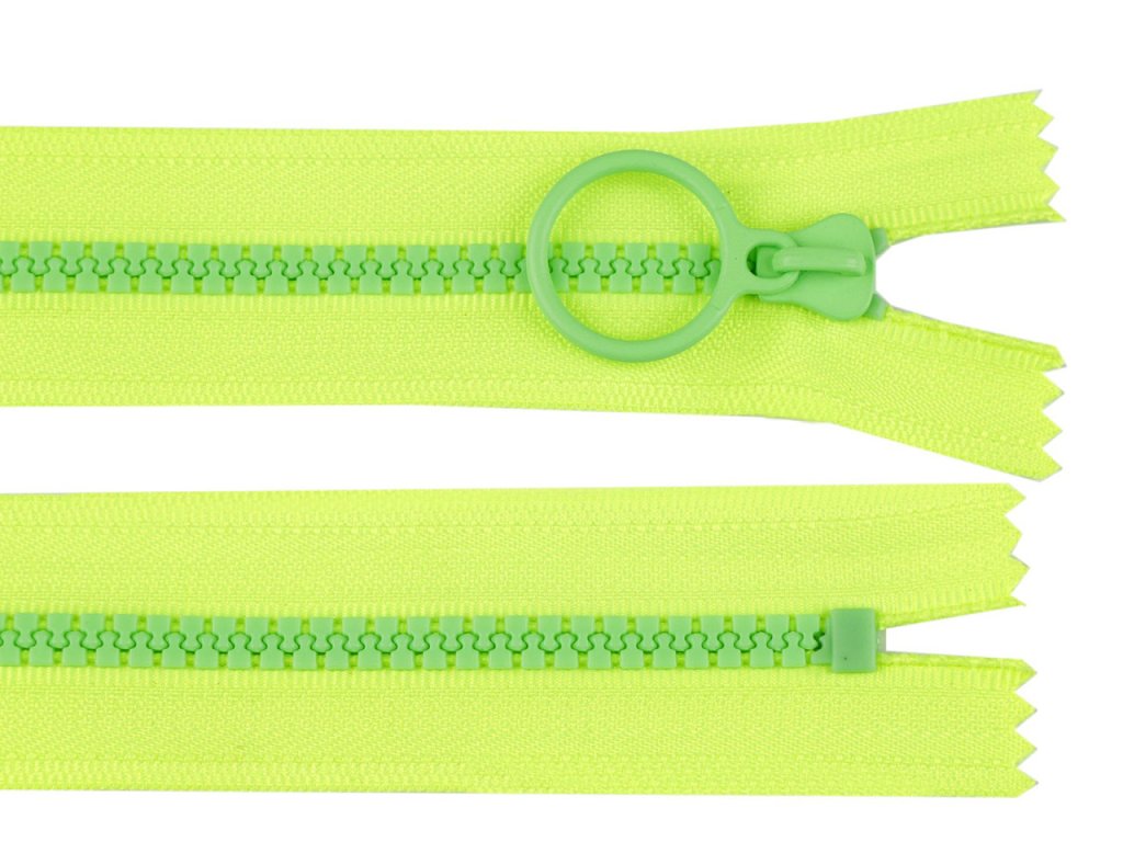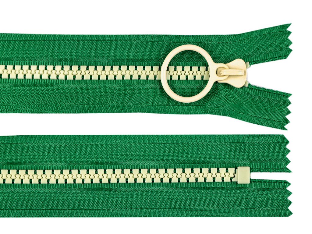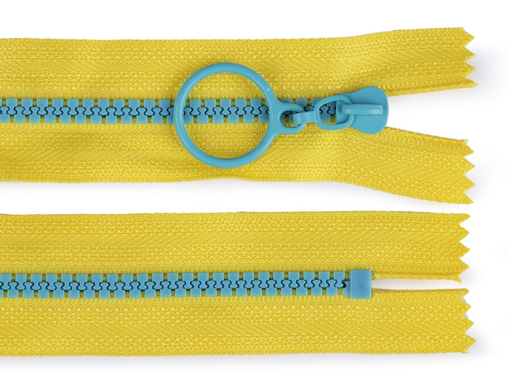 Nedělitelný kostěný zip je vhodný na mikiny, trička, menší tašky či pouzdra. Jezdec a zoubky vynikají jiným zabarvením než samotný zip.