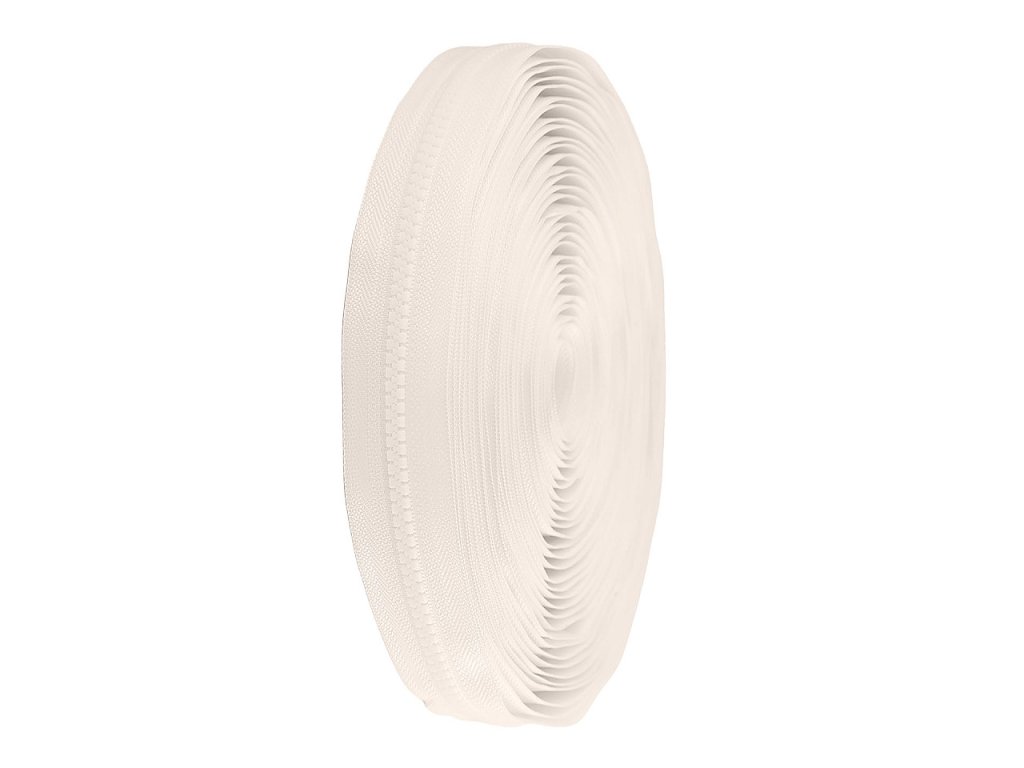 Metrážový kostěný zip, šíře zipu 5 mm. Vhodné kovové jezdce naleznete pod kódem 090242, 070268.